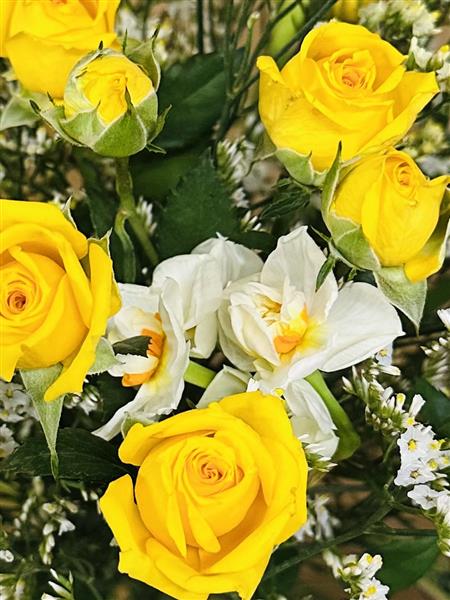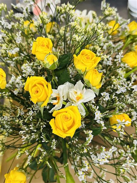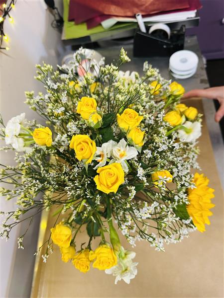 Fresh yellow spray rose , you can choose to fill with the gypsophila or a greenery